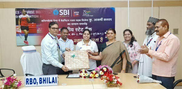 कॉमनवेल्थ गेम्स 2022 में रजत पदक विजेता कु. आकर्षी कश्यप का एसबीआई भिलाई ने किया सम्मान