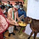 रायपुर। मुख्यमंत्री भूपेश बघेल के रायपुर स्थित निवास में हर वर्ष की तरह इस वर्ष भी गोवर्धन तिहार पारंपरिक हर्षाेल्लास के बीच धूमधाम और उत्साह के साथ मनाया जा रहा है । इस मौके पर मुख्यमंत्री भूपेश बघेल ने धर्मपत्नी श्रीमती मुक्तेश्वरी बघेल और परिवार के सदस्यों के साथ तुलसी, गौरा-गौरी और गोवर्धन पूजा की और गौमाता को खिचड़ी खिलाकर प्रदेश की सुख-समृद्धि और खुशहाली की मंगलकामना की।