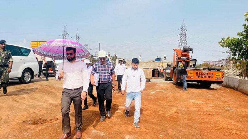 दुर्ग। कलेक्टर पुष्पेन्द्र कुमार मीणा आज कुम्हारी के फ्लाई ओवर का निरीक्षण करने पहुंचे थे। निरीक्षण भी तपती दोपहरी में कर रहें थे और धूप भी कॉफी तेज थी जिसके चलते उन्हें छतरी का सहारा लेना पड़ा। उन्हे भी पता है तेज धूप किस कदर लोगों का जीना मुहाल कर देती है। उन्होंने फ्लाई ओवर के राईट साईड के ब्रिज पर नेशनल हाईवे के संबंधित इंजिनियर से जानकारी मांगी। संबंधित इंजिनियर के द्वारा बताया गया कि हायर आथॉरिटी द्वारा निर्माण कार्य में तय बिंदुओं पर कार्य न होने के चलते अधोसंरचना में कमी मिली है जिसके चलते ब्रिज के स्टिल आर्च जिसकी लंबाई लगभग 60 मीटर है को डिसमेंटल करने का आदेश दिया गया है।
