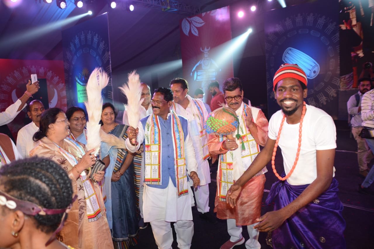 रायपुर। छत्तीसगढ़ की राजधानी रायपुर में आयोजित हो रहे राष्ट्रीय आदिवासी नृत्य महोत्सव के दूसरे दिन वह माहौल बना, जिससे इस आयोजन की सार्थकता नजऱ आयी। यहाँ दूसरे दिन विदेशी कलाकारों की प्रस्तुति की अंतिम कड़ी में नाइजीरिया के कलाकारों ने पेशकश दी। इन कलाकारों ने मंत्रमुग्ध करने वाली ताल के साथ नृत्य तो किया ही, इसके साथ ही अंतिम दौर में कलाकारों ने राज्य के मंत्रीगणों व अन्य अतिथियों को भी मंच पर अपना साथ देने के लिए आमंत्रित किया।