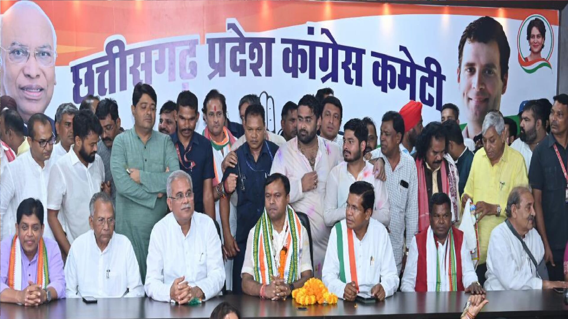 रायपुर। छत्तीसगढ़ कांग्रेस के नए प्रदेश अध्यक्ष दीपक बैज ने आज पदभार संभाल लिया है। वो दोपहर 1 बजकर 45 मिनट पर रायपुर के स्वामी विवेकानंद एयरपोर्ट पहुंचे। इस दौरान कांग्रेसी कार्यकर्ताओं ने उनका गर्मजोशी के साथ जगह-जगह, चौक-चौराहों पर गर्मजोशी से साथ स्वागत किया। इसके बाद वो शाम साढ़े 5 बजे प्रदेश कांग्रेस मुख्यालय राजीव भवन पहुंचे, जहां कांग्रेस नेत्रियों ने तिलक लगाकर उनका स्वागत किया। इसके बाद बंद कमरें में पीसीसी चीफ ने पदभार ग्रहण किया। इस दौरान बंद कमरे में सीएम भूपेश बघेल, पूर्व पीसीसी चीफ मोहन मरकाम, गृहमंत्री ताम्रध्वज साहू, मंत्री कवासी लखमा आदि मौजूद रहे। इसके बाद कांग्रेस मंत्री मरकाम, सीएम भूपेश ने एक औपचारिक बैठक लेकर कांग्रेसियों को संबोधित किया।