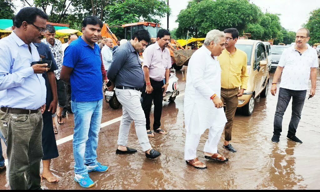 दुर्ग। नगर पालिक निगम. दुर्ग शहर विधायक अरुण वोरा, महापौर धीरज बाकलीवाल एवं आयुक्त प्रकाश सर्वे ने शनिवार को. भारी बारिश में निगम के अधिकारियों को साथ में लेकर जल भराव से प्रभावित क्षेत्रो में पहुचे उन्होंने महिला समृद्धि बाजार, पटेल चौक, दुर्गा चौक, शंकर नगर, दादा बड़ी दीपक नगर, शिक्षक नगर, गणपति विहार, आनंद विहार, बम्लेश्वरी कालोनी बोरसी, केलाबाड़ी सहित विभिन्न बस्तियों एवं जल भराव से प्रभावित क्षेत्रों का सघन दौरा किया।