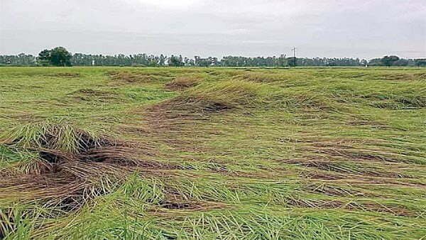 कृषि सूत्रों के मुताबिक, धान की हरहुना किस्म की फसल खेतों में पककर पूरी तरह तैयार हो गई है। इस बारिश से खड़ी फसल गिरकर जमीन में लेट गई है। इससे बालियों में से बीज झडऩे की साथ ही जमीन के संपर्क में आए बीजों में अंकुरण का खतरा भी बढ़ गया है। नमी वाली जमीन पर बालियों के लेट जाने से कटवा बीमारी भी उत्पादन में कमी का कारण बनेगी जिसमें पूरी की पूरी बाली टूट के अलग हो जाती है । यही खतरा खेत में कटकर रखी फसलों पर भी पड़ेगा। निर्धारित दिवस के अंदर फसल न कट पाने के कारण कटाई और धुलाई में सूखे पौधों से बालियां झडऩे से भी उत्पादन में गिरावट आएगी।