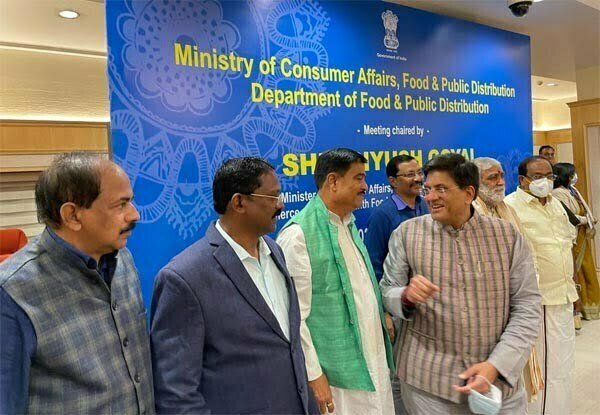 मंत्री श्री भगत ने केन्द्रीय खाद्य मंत्री को बताया कि खरीफ विपणन वर्ष 2021-22 में धान खरीदी हेतु छत्तीसगढ़ को भारत सरकार द्वारा 2.14 लाख गठान जूट बारदाने की आपूर्ति की सहमति दी गई है, जिसमें से अब तक मात्र 1.31 लाख गठान बारदाने की ही आपूर्ति की गई है। छत्तीसगढ़ में इस वर्ष एक करोड़ पॉच लाख मीटरिक टन धान खरीदी का अनुमान है, जिसके विरूद्ध राज्य में 21 दिसम्बर तक 37 लाख मीटरिक टन अधिक धान की खरीदी की जा चुकी है। उन्होंने राज्य में समर्थन मूल्य पर धान उपार्जन की व्यवस्था को सुचारू रूप से संचालित करने के लिए 31 दिसम्बर सेे पहले छत्तीसगढ़ को शेष 83 हजार गठान बारदाने जूट कमिशनर के माध्यम से उपलब्ध कराने का आग्रह किया। श्री भगत ने बताया कि छत्तीसगढ़ राज्य में चावल की कई किस्में अरवा मिलिंग के लिए उपयुक्त नहीं है। राज्य में 416 उसना मिलें संचालित है, जिसकी मिलिंग क्षमता का उपयोग धान के निराकरण में आवश्यक है। खरीफ विपणन वर्ष 2021-22 में 23 लाख टन उसना चावल भारतीय खाद्य निगम द्वारा उपार्जित किए जाने का प्रस्ताव छत्तीसगढ़ सरकार द्वारा भारत सरकार को भेजा गया है। उन्होंने केन्द्रीय मंत्री श्री गोयल से छत्तीसगढ़ राज्य से उसना चावल लेने का अनुरोध किया।