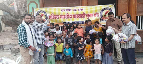 भाटापारा। छत्तीसगढ़ प्रदेश की मारवाड़ी युवा मंच भाटापारा शाखा द्वारा ‘होली पर खुशीयों के रंग,हर मासुम के संग’ कार्यक्रम के तहत,भाटापारा मारवाड़ी युवा मंच ने दर्जनों बच्चों को रंग, गुलाल, पिचकारी, टोपी आदी सामग्री का वितरण किया एवं उन बच्चो को अपनी भारतीय संस्कृति के अनुरूप मनाये जाने वाले तीज त्यौहार में हमेशा बढ़ चढ़कर मनाने के लिए प्रेरित किया एवं आज के दौर में जो बच्चे परिवार की आर्थिक स्थिति सुदृढ़ नही होने के कारण तीज त्यौहार को पूर्ण हर्षोल्लास से नही मना पाते उन्हें विभिन्न पर्वो में विभिन्न पर्व अनुरूप सामग्री वितरण करने का निर्णय भी लिया ।