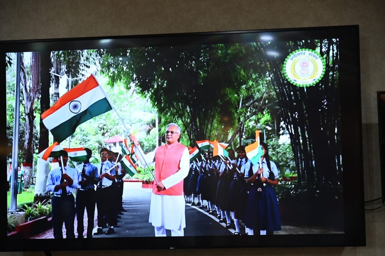 मुख्यमंत्री ने कहा कि हम छत्तीसगढ़ के लोग इस अभियान के माध्यम से राष्ट्रीय एकजुटता पर भी अपने गर्व को व्यक्त कर रहे हैं। मुख्यमंत्री बघेल ने प्रदेशवासियों से आव्हान किया कि इस अभियान के दौरान शासकीय, अशासकीय संस्थानों, दुकानों, इमारतों और घरों में राष्ट्रीय ध्वज अवश्य फहराएं। इस अवसर पर मुख्यमंत्री के अपर मुख्य सचिव सुब्रत साहू, जनसम्पर्क विभाग के संचालक सौमिल रंजन चौबे उपस्थित थे।