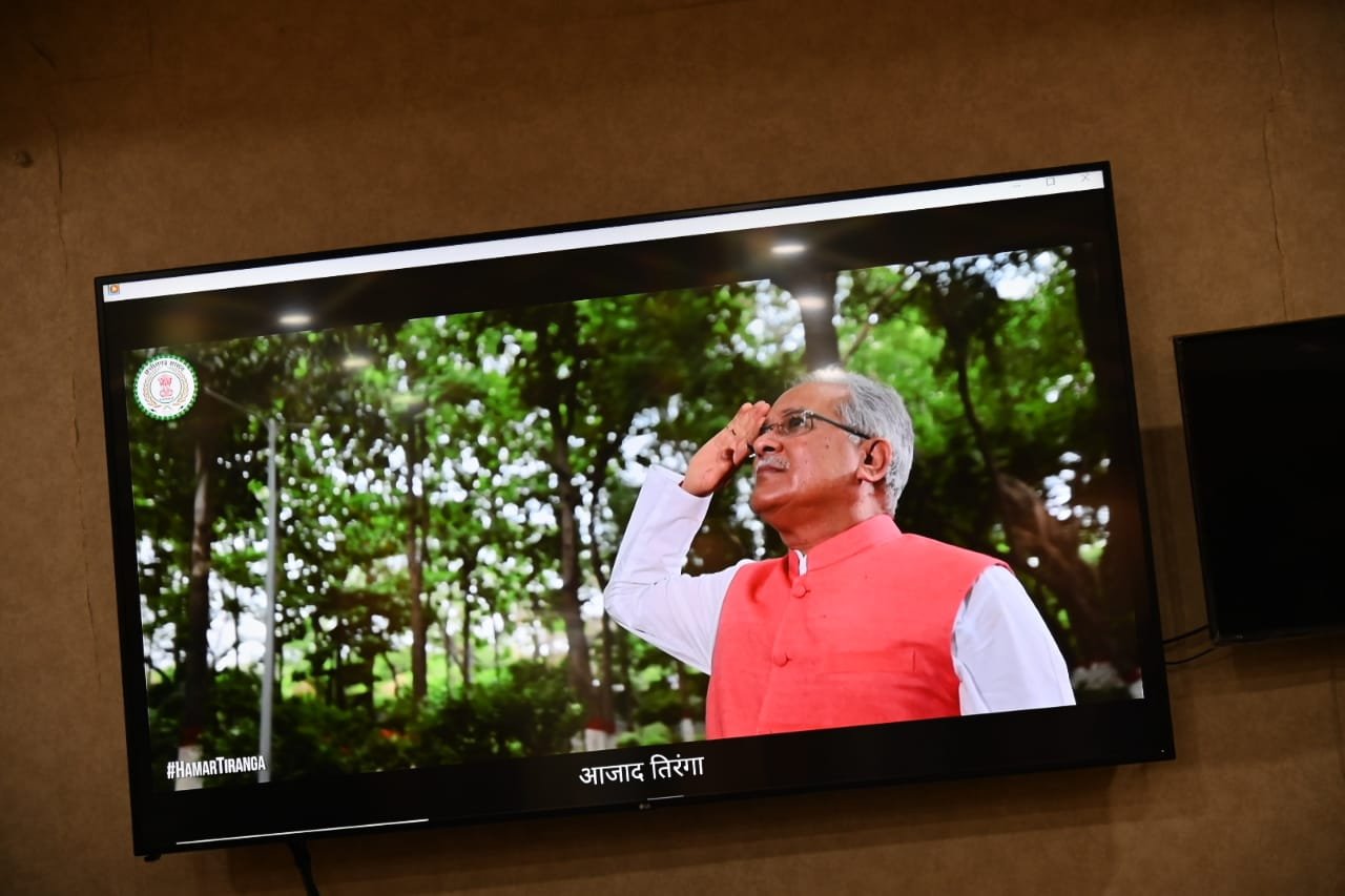 मुख्यमंत्री ने इस अवसर पर कहा कि 11 अगस्त से 17 अगस्त के मध्य मनाए जा रहे स्वतंत्रता सप्ताह के अंतर्गत छत्तीसगढ़ में हमर तिरंगा अभियान की शुरूआत की गई है। इस अभियान के दौरान राज्य के गांव-गांव, शहर-शहर, घरों, शासकीय कार्यालयों, संस्थानों में राष्ट्रीय ध्वज फहराया जा रहा है।