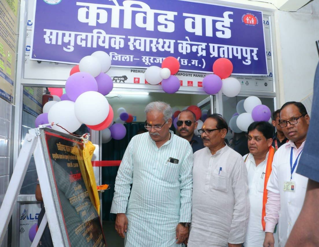 मुख्यमंत्री श्री बघेल ने आज सामुदायिक स्वास्थ्य केंद्र प्रतापपुर में 20 बिस्तरीय नए कोविड वार्ड का लोकार्पण किया। 32 लाख रुपये की लागत से बने इस वार्ड में कोविड मरीजों के इलाज की सुविधायें रहेंगी।इसके साथ ही सामान्य बीमारियों के मरीजों को भी भर्ती कर इलाज किया जा सकेगा।
