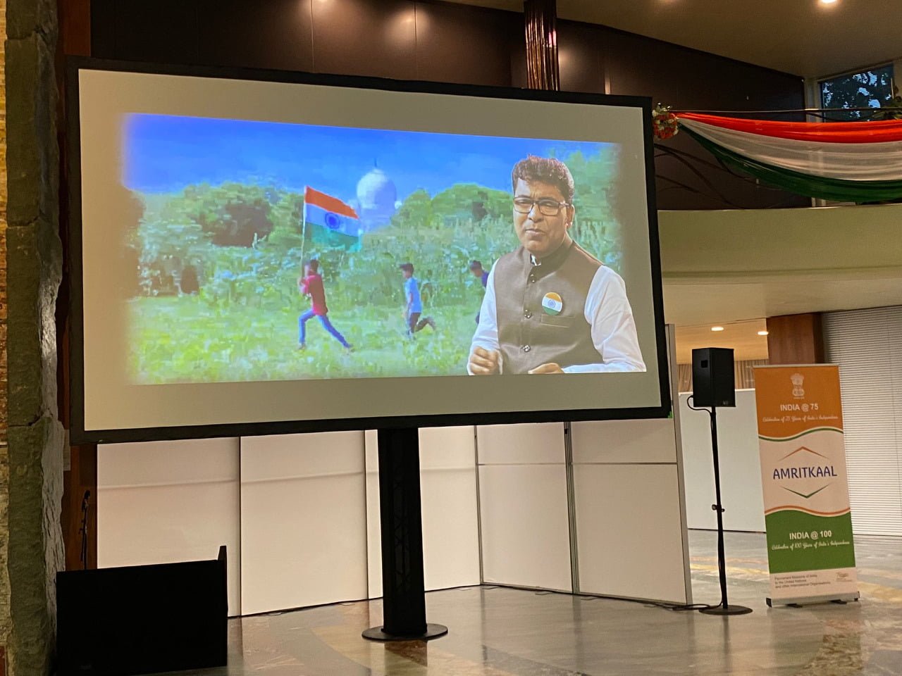 जिसमें जिनेवा में प्रवासी भारतीयों सहित 300 से अधिक सदस्यों के मध्य संयुक्त राष्ट्र संघ और अन्य अंतर्राष्ट्रीय संगठनों में भारत के स्थायी प्रतिनिधि इंद्रमणि पांडे ने ध्वजारोहण किया। इसके अलावा संयुक्त राष्ट्र संघ के स्थायी मिशन द्वारा 15 अगस्त की शाम को आयोजित स्वागत समारोह में भी यह वीडियो प्रदर्शित किया गया था, जिसमें 400 से अधिक विशिष्ट अतिथि शामिल हुए थे।