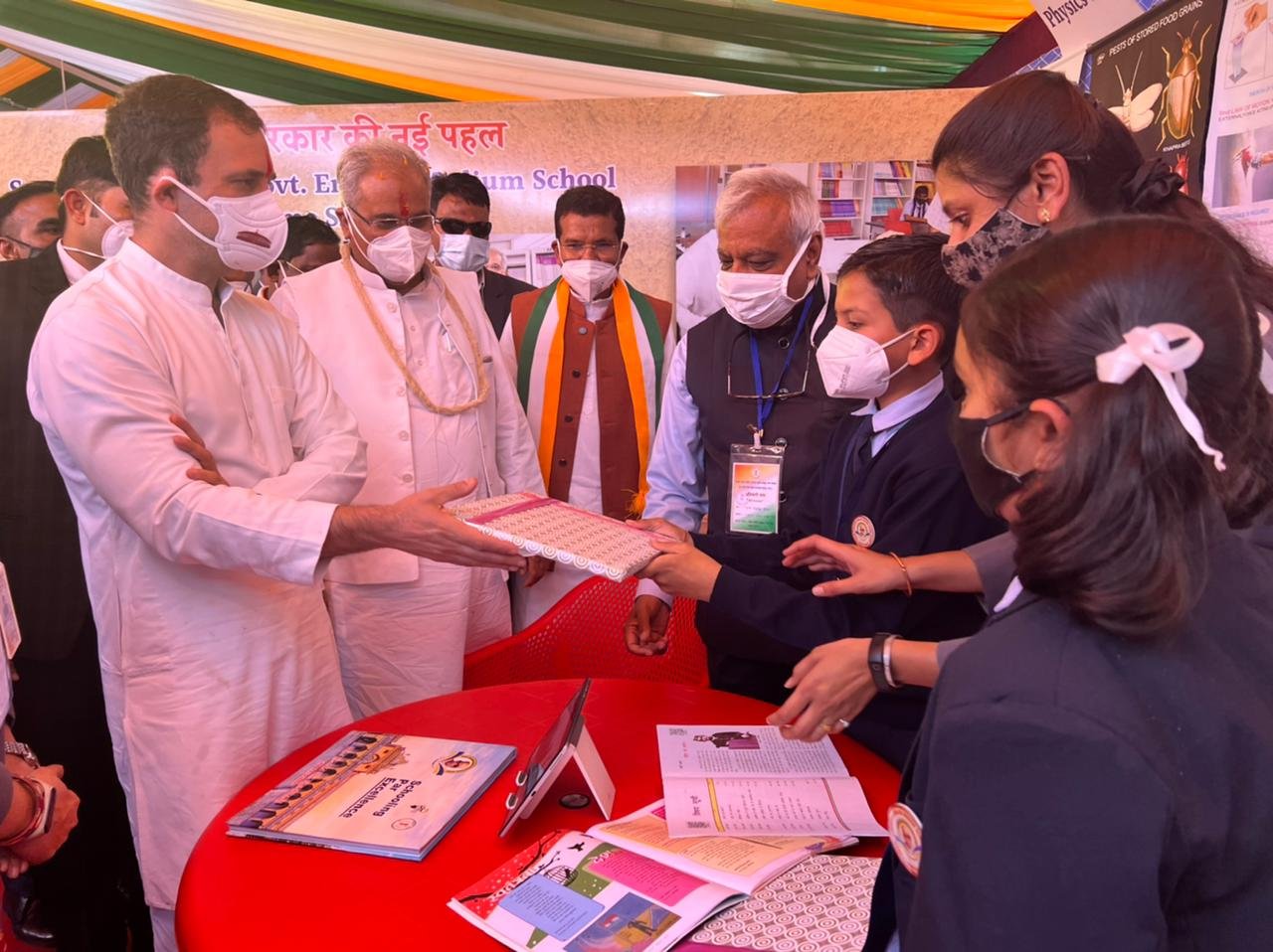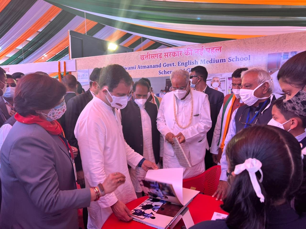 राहुल गांधी ने प्रदर्शनी स्थल में प्रदेश सरकार की महत्वाकांक्षी स्वामी आत्मानंद अंग्रेजी माध्यम स्कूल योजना के बारे में जानकारी ली