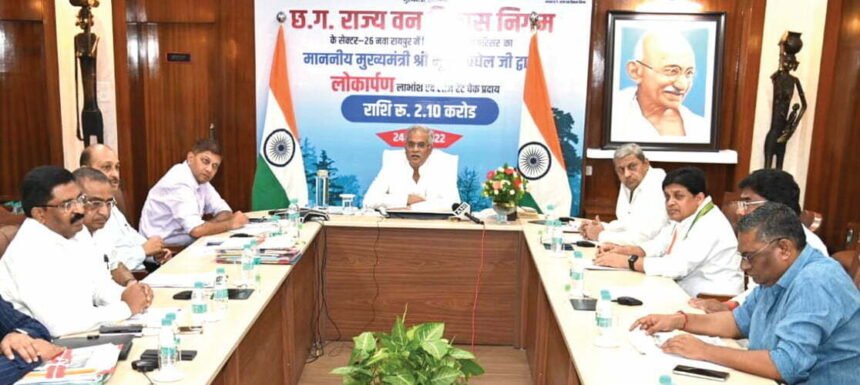 इस अवसर पर वन एवं जलवायु परिवर्तन मंत्री मोहम्मद अकबर, नगरीय प्रशासन एवं विकास मंत्री डॉ.शिवकुमार डहरिया, छत्तीसगढ़ राज्य वन विकास निगम के अध्यक्ष देवेन्द्र बहादुर सिंह, मुख्यमंत्री के सलाहकार प्रदीप शर्मा, मुख्य सचिव अमिताभ जैन, वन विभाग के अपर मुख्य सचिव सुब्रत साहू, प्रधान मुख्य संरक्षक एवं वन बल प्रमुख राकेश चतुर्वेदी, आयुक्त मनरेगा मोहम्मद अब्दुल केसर हक, नोडल अधिकारी नरवा, गरूवा, घुरूवा, बाड़ी डॉ. अय्याज फकीर भाई तम्बोली, मुख्य कार्यपालन अधिकारी कैम्पा व्ही.श्रीनिवास राव, अपर प्रधान मुख्य वन संरक्षक अरूण पाण्डेय, अपर प्रबंध संचालक व्ही. आनंद बाबू सहित विभागीय अधिकारी उपस्थित थे।