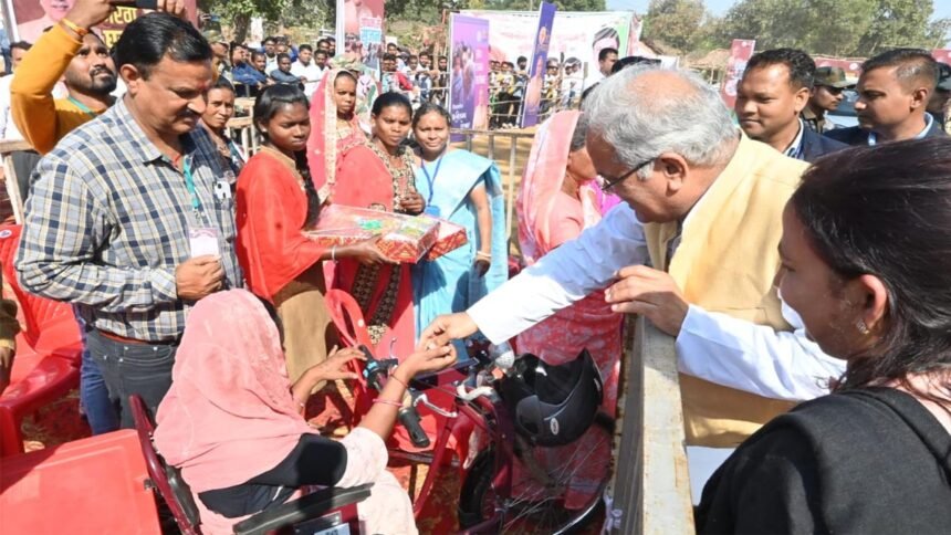 रायपुर। मुख्यमंत्री भूपेश बघेल ने ग्राम बगारपाली में भेंट-मुलाकात कार्यक्रम के दौरान हितग्राहियों को सामग्री वितरण किया। उन्होंने समाज कल्याण विभाग के 6 हितग्राहियों को सहायक उपकरण और डेमो चेक वितरित किए।