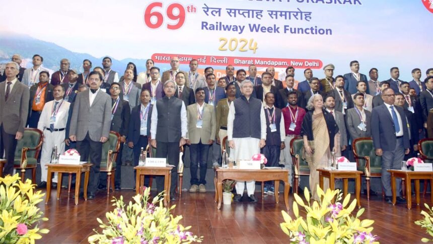 रायपुर/नईदिल्ली। रेल मंत्री अश्विनी वैष्णव ने शनिवार को भारत मंडपम, नई दिल्ली में 101 रेलवे अधिकारियों को 69वां अति विशिष्ट रेल सेवा पुरस्कार और विभिन्न श्रेणियों में सर्वश्रेष्ठ प्रदर्शन करने वाले ज़ोनों को 22 शील्ड प्रदान की। इस समारोह में रेलवे बोर्ड के अध्यक्ष एवं सीईओ सतीश कुमार, रेलवे बोर्ड के सदस्य और विभिन्न रेलवे ज़ोनों व उत्पादन इकाइयों के महाप्रबंधकों की उपस्थिति रही। समारोह में दक्षिण पूर्व मध्य रेलवे के हरीश कुमार बंजारे सीनियर सेक्शन इंजीनियर (टीआरडी) व राजेश कुमार तिवारी, सीनियर सेक्शन इंजीनियर (ट्रैक मशीन) को भी अतिविशिष्ट रेल सेवा पुरस्कार मिला।