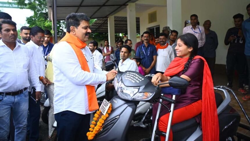 रायपुर। प्रदेश के उपमुख्यमंत्री एवं गृहमंत्री विजय शर्मा ने कवर्धा प्रवास के दौरान विधायक कार्यालय में जिले के 25 दिव्यांगजनों को पेट्रोल चलित स्कूटी वितरण किया। उन्होंने इस अवसर पर दूर-दराज से आए दिव्यांगजनों से आत्मीयता से मुलाकात की और उनकी समस्याओं से रूबरू भी हुए। उन्होंने कहा कि प्रदेश में विष्णु देव साय की सरकार आपके सहयोग और आर्थिक विकास के लिए हमेशा साथ रहेगी। उन्होंने कहा कि लोगों की सेवा और क्षेत्र का विकास हमारी प्राथमिकता में शामिल है।