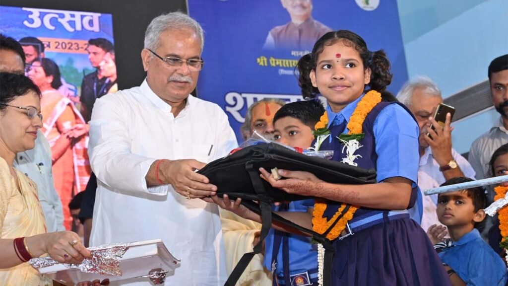 मुख्यमंत्री ने शाला प्रवेशोत्सव के मौके पर स्कूली बच्चों को तिलक लगाकर, माला पहनाकर तथा उन्हें मिठाई खिलाकर शाला प्रवेश कराया। इस मौके पर मुख्यमंत्री ने स्कूली बच्चों को गणवेश, पुस्तकें तथा स्कूल बैग का भी वितरण किया। मुख्यमंत्री ने विद्यार्थियों, शिक्षक-शिक्षिकाओं, प्राचार्यों और अभिभावकों को नये शिक्षा सत्र के शुभारंभ और शाला प्रवेशोत्सव की बधाई देते हुए कहा कि यही बच्चे हमारा भविष्य हैं और इन बच्चों को शिक्षा का उचित वातावरण देना हमारी जिम्मेदारी है ताकि इनका पढ़ाई में मन लगा रहे।