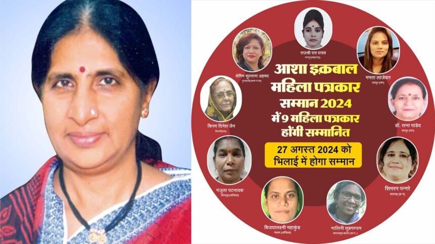 भिलाई। छत्तीसगढ़ के भिलाई-रायपुर में “आशा इक़बाल महिला पत्रकार सम्मान” की महत्वपूर्ण भूमिका है। यह प्रतिष्ठासूचक सम्मान प्रदान करने का सिलसिला वर्ष 2013 से निरंतर जारी है और अब तक 25 महिला पत्रकारों को सम्मानित किया जा चुका है। इस सम्मान से वर्ष-2024 के 12वें वर्ष में छत्तीसगढ़ सहित देश के 5 राज्यों (छत्तीसगढ़, असम, महाराष्ट्र, मध्यप्रदेश एवं ओडिशा) की 9 चुनिंदा महिला पत्रकारों को सम्मानित किया जाएगा।