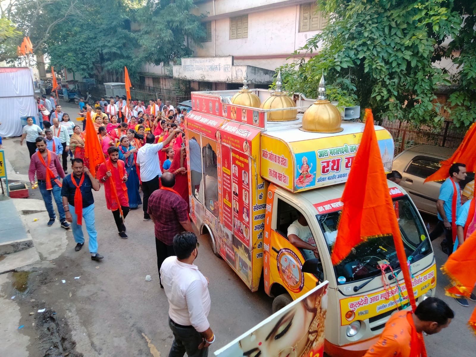 खुर्सीपार में अग्रवाल सेवा समित ने रथयात्रा का भव्य स्वागत किया। यहां सिर पर कलश लेकर महिलाओं ने रथयात्रा की अगुवाई की। इसदौरान युवा हाथों में अग्रध्जव लिए साथ चल रहे थे। अग्रसेन द्वार के पास स्वागत के बाद रथयात्रा अग्रसेन भवन खुर्सीपार पहुंची।