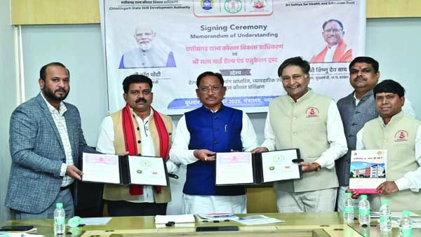रायपुर । मुख्यमंत्री विष्णु देव साय की उपस्थिति में नवा रायपुर स्थित मंत्रालय (महानदी भवन) में छत्तीसगढ़ राज्य कौशल विकास प्राधिकरण एवं सत्य साईं हेल्थ एंड एजुकेशन ट्रस्ट के बीच एक महत्वपूर्ण समझौता ज्ञापन (एमओयू) पर हस्ताक्षर किए गए।