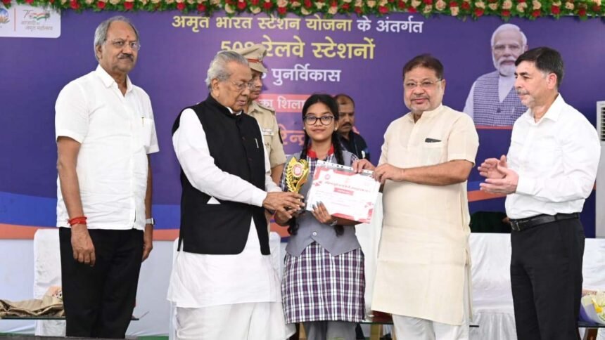 रायपुर। प्रधानमंत्री नरेंद्र मोदी ने अमृत भारत स्टेशन योजना के तहत देश के 508 रेलवे स्टेशनों के पुनर्विकास कार्यों का शिलान्यास वीडियों कॉन्फ्रेंसिंग के माध्यम से किया। इनमें छत्तीसगढ़ के 7 रेलवे स्टेशन रायपुर, बिलासपुर, दुर्ग, तिल्दा-नेवरा, अकलतरा, भिलाई पावर हाउस और महासमुंद शामिल हैं। बिलासपुर, दुर्ग और रायपुर के महत्वपूर्ण रेलवे स्टेशनों कों प्रत्येक स्टेशनों के लिए 500 करोड़ रूपए की लागत से एक बड़ा उन्नयन मिलेगा। रायपुर में आयोजित समारोह में रायपुर से राज्यपाल विश्व भूषण हरि चंदन शामिल हुए।