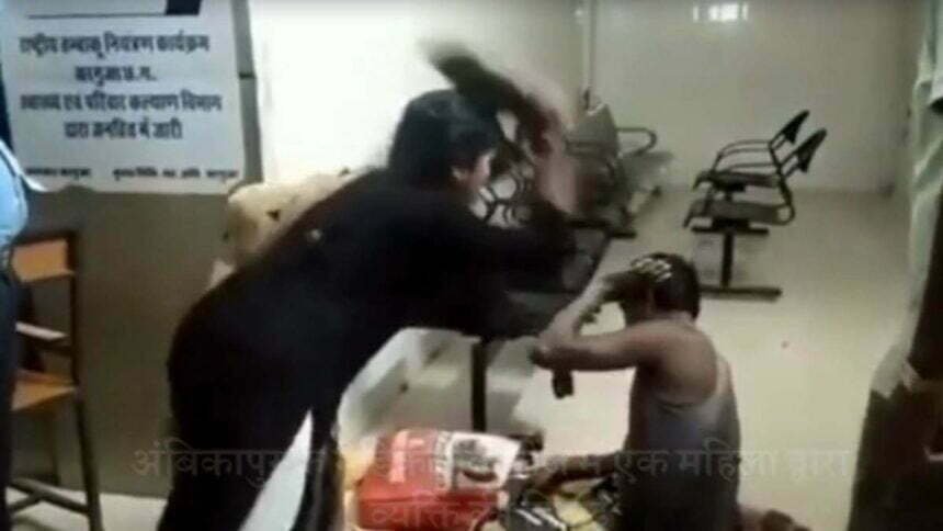 सरगुजा। अंबिकापुर मेडिकल कॉलेज अस्पताल का एक वीडियो सोशल मीडिया पर जमकर वायरल हो रहा है। इस वीडियो में देखा जा रहा है कि एक महिला एक युवक को लात मार रही है और चप्पल से पिटाई कर रही है। युवक महिला से मार खा रहा है। जब पुलिस पहुंची तो इसकी वजह भी बाहर निकली। दरअसल महिला युवक को कूलर चालू करने के कारण मार रही थी।