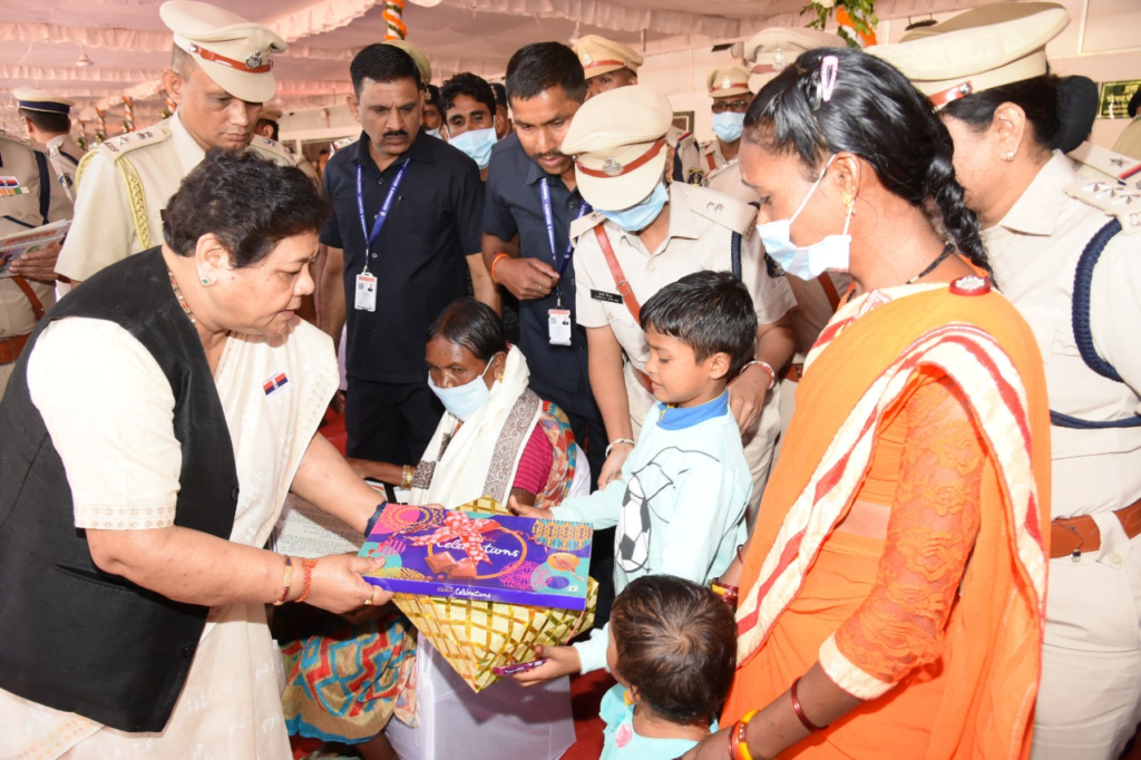 पुलिस स्मृति दिवस के अवसर पर राज्यपाल सुश्री अनुसुईया उइके और गृहमंत्री ताम्रध्वज साहू ने शहीद पुलिस अधिकारियों व जवानों के परिजनों से भेंट की और अपनी संवेदना व्यक्त करते हुए सदैव उनके साथ खड़े रहने का विश्वास दिलाया। राज्यपाल ने शॉल और श्रीफल देकर शहीदों के परिजनों का सम्मान भी किया। राज्यपाल सुश्री उइके ने शहीदों के बेटे-बेटियों से मिलकर अभिभावक की तरह उन्हें दुलारा और स्नेह किया तथा आगे बढऩे की प्रेरणा भी दी।
