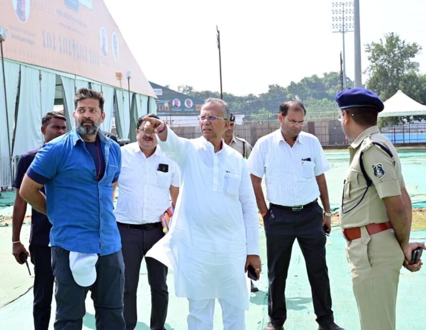 रायपुर । छत्तीसगढ़ राज्य की 23वीं वर्षगांठ धूमधाम से मनाने की तैयारी चल रही है। राजधानी रायपुर के साइंस कालेज ग्राउंड में 1 नवंबर को आयोजित राज्योत्सव के साथ ही 1 से 3 नवंबर तक राष्ट्रीय आदिवासी नृत्य महोत्सव का भी आयोजन किया जा रहा है। शनिवार को राज्योत्सव एवं राष्ट्रीय आदिवासी नृत्य महोत्सव की तैयारियो का जायजा लेने के लिए प्रदेश के गृह, लोक निर्माण एवं पर्यटन मंत्री ताम्रध्वज साहू साइंस कालेज मैदान पहुंचे।