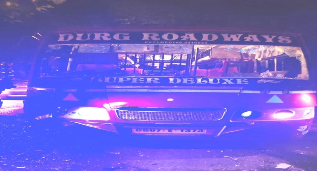 भिलाई. दुर्ग जिले में एक बेकाबू बस ने बाइक सवार तीनों लोगों को अपनी चपेट में ले लिया। जिससे तीनों ग्रामीणों की मौके पर ही मौत हो गई। यह भीषण सड़क हादसा बुधवार रात ननकट्ठी गांव के पास की है। मिली जानकारी के अनुसार तीनों मृतक एक ही बाइक पर सवार होकर मेड़ेसरा गांव जा रहे थे। इधर घटना के बाद गुस्साए ग्रामीणों ने बस में जमकर तोडफ़ोड़ कर दिया। जिसकी सूचना मिलते ही तुरंत मौके पर नंदिनी थाना पुलिस पहुंची। ग्रामीणों को किसी तरह शांत कराकर शवों को अपने कब्जे में लिया।