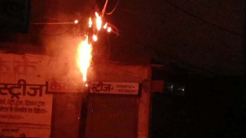 भिलाई ब्रेकिंग : सुपेला लक्ष्मी नगर मार्केट में बिजली के खंबे पर लगी आग, चपेट में आया दुकान