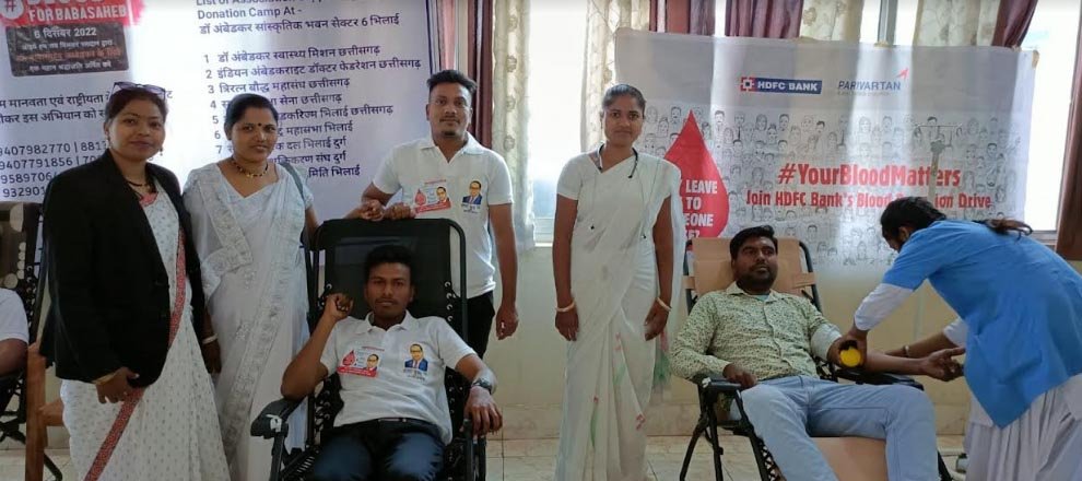 भिलाई। डॉक्टर बाबासाहेब आंबेडकर के महापरिनिर्वाण दिवस पर अंतरराष्ट्रीय स्तर पर चलाई गई मुहिम ब्लड फॉर अंबेडकर के अंतर्गत इस्पात नगरी भिलाई में भी मंगलवार को रक्तदान किया गया। यहां अंबेडकरवादियों ने मिल कर 95 यूनिट रक्तदान किया।
