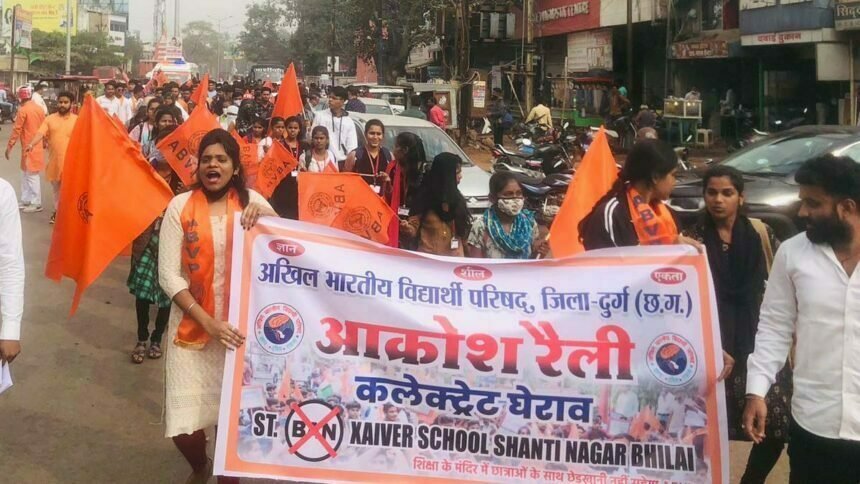 सेंट जेवियर्स स्कूल के टीचर्स छात्राओं पर केस वापस लेने का बना रहे दबाव, अभाविप ने आक्रोश रैली निकाल कलेक्टर को सौंपा ज्ञापन