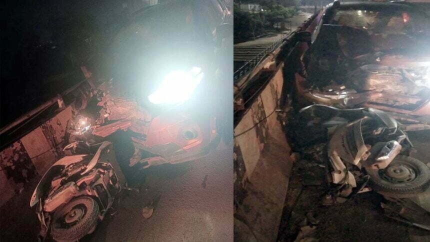 पुलगांव पुलिस से मिली जानकारी के अनुसार स्कूटर सवाल पति-पत्नी दुर्ग के पोलसायपारा निवासी थे। पोलसायपारा निवासी ज्ञानचंद लेखवानी (56) अपनी पत्नी वंदना लेखवानी (45 साल) के साथ शनिवार रात को राजनांदगांव से लौट रहे थे। आधी रात लगभग 12:30 बजे वे शिवनाथ पुल से गुजर रहे थे। इस दौरान कार CG 07 BF 5195 ने इनकी स्कूटर को सामने से जोरदार टक्कर मार दी। कार की ठोकर से इनकी स्कूटर घसीटती चली गई। कार सवार मौके से फरार हो गया और दोनों पति-पत्नी की मौके पर ही मौत हो गई। हादसे में कार सवारों को चोट नहीं आई है। बताया जा रहा है कि कार के एयरबैग खुलने के कारण वे सुरक्षित बच गए। बताया जा रहा है कि मृतक ज्ञानचंद लेखवानी की दुर्ग में जूते चप्पल की दुकान है।