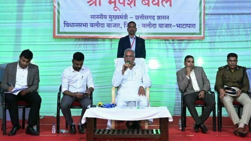 रायपुर। मुख्यमंत्री भूपेश बघेल ने बलौदाबाजार विधानसभा क्षेत्र के ग्राम सरोरा और पुरैना-खपरी में आम जनता से भेंट-मुलाकात के बाद बलौदाबाजार कलेक्टोरेट परिसर में अधिकारियों की बैठक लेकर विकास एवं निर्माण कार्यों की समीक्षा की। मुख्यमंत्री ने निर्माण विभाग के अधिकारियों को निर्माण कार्यों की गुणवत्ता और समायावधि का विशेष रूप से ध्यान रखने के निर्देश दिए। उन्होंने कहा कि निर्माण कार्यों में किसी भी तरह की लापरवाही नहीं होनी चाहिए। मुख्यमंत्री ने कहा कि शासन की योजनाओं का लाभ पात्र लोगों तक पहुंचे यह सुनिश्चित करना प्रशासन की जिम्मेदारी है।
