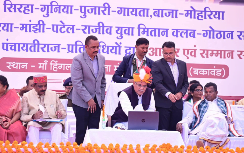 सिरहा, गुनिया, गायता, पुजारी, मांझी, बाजा-मोहरिया, आठ पहरिया, राजीव युवा मितान क्लब, गोठान समिति और पंचायती राज प्रतिनिधि द्वारा किया गया मुख्यमंत्री का सम्मान