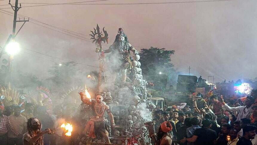 शिव की बारात में इस बार हरियाणा से आए पगला बाबा को देखने लोगों में काफी उत्सुकता दिखी। हरियाणा में मलंग बाबा पगला बाबा के नाम से प्रसिद्व है। वे अघोरी शिव के रूप में दिखे और उनके साथ भूत पिशाच की बड़ी संख्या में दिखे। अघोरी शिव के रूप में पगला बाबा ने शिव तांडव का नजारा पेश किया। नरमुंड़ों की माला पहले अघोरी पगला बाबा अलग ही रंग में नजर आ रहे थे। इसके अलावा अन्य प्रदेशों से पहुंची झांकियों ने भी कार्यक्रम स्थल पर अपनी प्रस्तुति दी। बारात के दौरान भीड़ को संभालने में भी सुरक्षा कर्मियों के पसीने छूट गए।