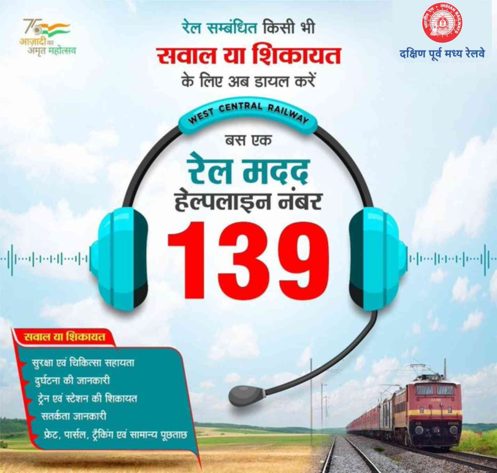 बिलासपुर (पीआईबी)। देश की लाइफ लाइन भारतीय रेलवे जिससे हर दिन करोड़ों की संख्या में यात्री यात्रा करके अपने गंतव्य स्थान तक पहुंचते हैं। यात्रियों की बड़ी संख्या को देखते हुए रेलवे हर समय यात्रियों की सुविधा के लिए नए-नए कदम उठाता रहता है। रेलवे ने यात्रियों की सुविधा के लिए एक हेल्पलाइन नंबर (Helpline Number) जारी किया है। इस नंबर के जरिए यात्रियों को हर समस्या का समाधान मिलता है। अक्सर लोगों के रेल से जुड़ी कोई भी जानकारी लेने के लिए लंबी-लंबी लाइनों में लगना पड़ता था तथा अलग अलग तरह की सूचनाओं के लिए अलग अलग हेल्प लिने नंबर जारी किए गए थे। इन सब अलग अलग नंबरों को याद रखना आसान नहीं था। भारतीय रेलवे ने इस समस्या से छुटकारा दिला दिया है। दरअसल रेलवे ने यात्रियों के लिए एक खास सुविधा शुरू की है।