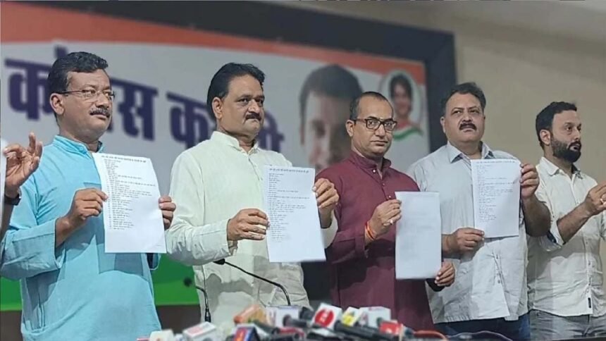 रायपुर। प्रधानमंत्री नरेन्द्र मोदी के रायपुर प्रवास से पहले छत्तीसगढ़ कांग्रेस भाजपा पर हमलावर हो गई है। मंगलवार को छत्तीसगढ़ कांग्रेस के नेताओं ने प्रेस कॉन्फ्रेंस लेकर भाजपा सरकार के घोटालों की लिस्ट जारी कर दी। प्रदेश कांग्रेस ने भाजपा सरकार के 34 घोटालों की लिस्ट जारी कर कहा कि रमन राज में 1 लाख करोड़ के घोटले हुए है। साथ की छत्तीसगढ़ कांग्रेस के नेताओं ने प्रधानमंत्री नरेन्द्र मोदी से सवाल किया कि कब इन घोटालों की जांच कराएंगे।