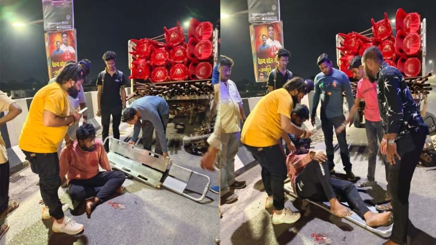 भिलाई। सुपेला फ्लाईओवर में बीती रात बड़ा हादसा हो गया है। फ्लाईओवर पर लापरवाही पूर्वक खड़ी पिकअप से बाइक सवार भिड़ गया। पिकअप में लोहे के पाइप भरे हुए थे जो कि बहर की ओर निकल गए थे। इनमें से एक पाइप युवक के सीने में घुस गया। हादसे के बाद वहां से गुजर रहे शख्स ने एंबुलेंस को कॉल किया और सुपेला अस्पताल ले गए। युवक की गंभीर स्थिति को देखते हुए उसे बीएम शाह हॉस्पिटल में भर्ती कराया गया जहां उसका इलाज चल रहा है। हादसे की सूचना के बाद सुपेला पुलिस भी मौके पर पहुंची और पिकअप को जब्त कर लिया है।