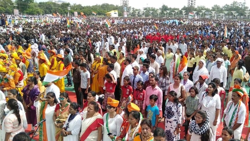रायपुर। स्वतंत्रता दिवस से पहले राजधानी रायपुर अनोखा रिकॉर्ड दर्ज किया गया है। आजादी के 76वें अमृत महोत्सव पर आज शुक्रवार को राजधानी रायपुर के साइंस कॉलेज ग्राउंड में करीब 2 लाख लोगों ने एक साथ राष्ट्रीय गीत ‘वंदे मातरम’ गाकर अनोखा रिकॉर्ड बनाया है। ओम सेवा मंडली शिवशक्ति अवतार सेवा संस्थान और वसुधैव कुटुंबकम फाउंडेशन की ओर से आयोजित इस कार्यक्रम में देशभर से करीब 10 हजार से ज्यादा लोग रायपुर पहुंचे।