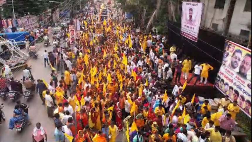 बिलासपुर। कृष्ण जन्माष्ठमी के मौके पर सर्व यादव समाज बिलासपुर के तत्वावधान में विशाल शोभायात्रा निकाली गई। शोभायात्रा में सैकड़ों की संख्या में यदुवंशियों ने भाग लिया। भगवान श्री कृष्ण के जयकारों के साथ शोभायात्रा बृहस्पति बाजार से शुरू हुई। इस मौके पर यहां स्थापित स्व बीआर यादव जी की प्रतिमा का पूजन किया गया। इसके बाद गाजे बाजे के साथ शोभायात्रा शहर घूमी। इस दौरान विधायक शैलेष पांडे ने यादव समाज के लिए 10 लाख रुपए देने की घोषणा की।