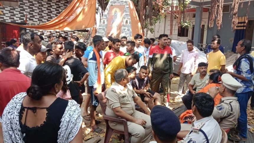 भिलाई। छावनी थाना क्षेत्र के तहत कैंप-2 संतोषी पारा के गणेश चौक के पास स्थित एक मंदिर से शिव-पार्वती की प्रतिमाओं को खंडित कर दिया गया। अज्ञात बदमाशों ने मंदिर में घुसकर तोड़फोड़ की है। शिव की प्रतिमा से त्रिशूल खींचकर ले गए और प्रतिमा से वस्त्र भी उतारे। जैसे ही मंदिर में प्रतिमा को खंडित होने की जानकारी लोगों को लगी वे मंदिर के पास जमा होने लगे। यही नहीं हिन्दू संगठन भी मौके पर पहुंच गए। मौके पर जमकर हंगामा हुआ। मौके पर छावनी पुलिस पहुंची और लोगों को समझाइश दी। हालांकि लोग आरोपियों को गिरफ्तार करने की मांग पर अड़े हुए हैं।