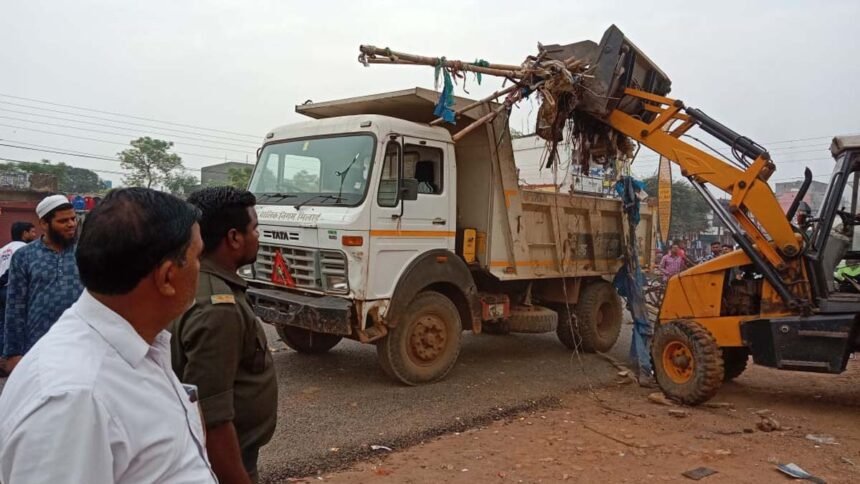 निगम ने रविवार को सुपेला घडी चौक से गदा चौक के बीच लगभग 20 दुकानो के सामने से सडक के दोनो किनारे पर बाँस बल्ली, टीन शेड से किये गये अवैध अतिक्रमण को निगम ने जेसीबी से बेदखल किया। रविवार की सुबह 8 बजे से अपर आयुक्त अशोक द्विवेदी के नेतृत्व मे जोन एक एवं दो की टीम पुलिस प्रशासन के साथ सडक के दोनो किनारे पर व्यवसाय करने वाले फल ठेला, खोमचा, रेहडी, पसरा व्यापारी को सडक पर व्यवसाय नही करने की समझाइश देकर हटाया और मार्केट मे दुकानदारो से दुकान के बाहर तखत रख कर अथवा बांस बल्ली, टीन शेड डाल कर किए अतिरिक्त कब्जो को हटाने कहा । निगम का अमला 3 स्थान पर सडक किनारे रखे बिल्डिंग मटेरियल को जेसीबी से डम्पर मे भरवा कर जब्त किया।