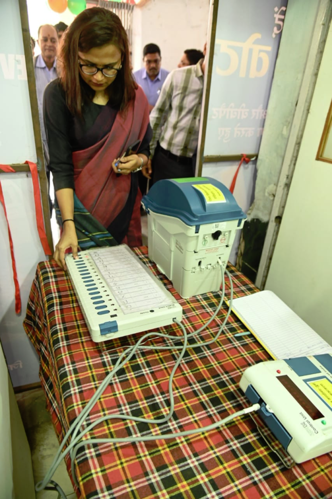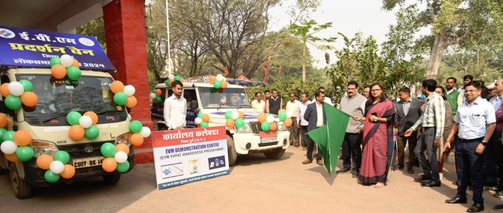 दुर्ग। मुख्य निर्वाचन पदाधिकारी, रायपुर के निर्देशानुसार जिले में मतदाता जागरूकता कार्यक्रम के अंतर्गत जिला कार्यालय दुर्ग में ईवीएम डेमोंसट्रेशन सेंटर की स्थापना की गयी है। कलेक्टर एवं जिला निर्वाचन अधिकारी सुश्री ऋचा प्रकाश चौधरी द्वारा आज ईवीएम डेमोंसट्रेशन सेंटर का शुभारंभ किया गया। साथ ही गठित टीम के साथ मोबाइल डेमोंसट्रेशन वाहन को हरी झंडी दिखाकर रवाना किया गया।