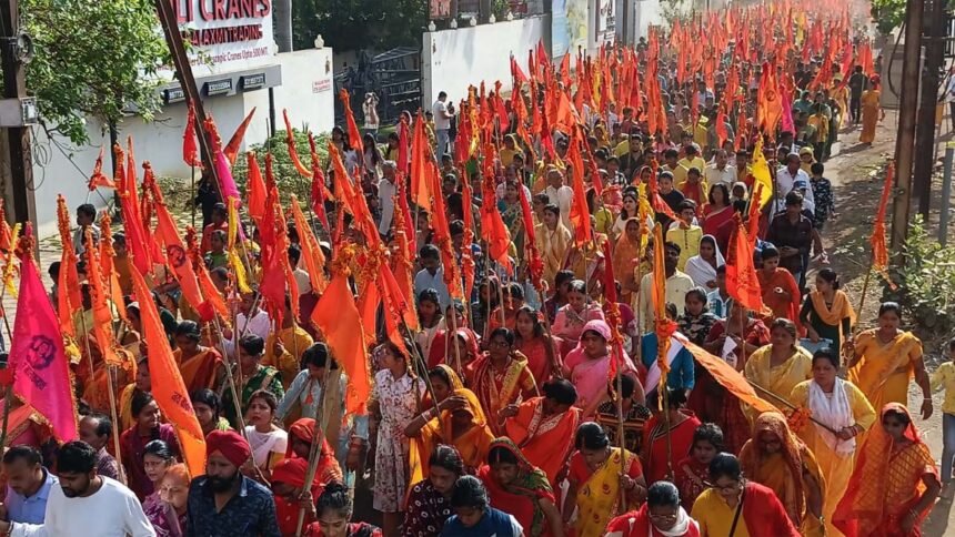 भिलाई। खुर्सीपार जोन-2 सेक्टर-11 स्थित सिद्धश्री बाबा बालकनाथ मंदिर में प्रति वर्ष की तरह इस वर्ष भी रविवार के दिन 17 मार्च को 60वां महायज्ञ व विशाल भंडरे का आयोजन रखा गया है। मंदिर समिति की ओर से शुक्रवार को नगर में विशाल प्रभात फेरी निकाली गई। मंदिर परिसर से हजारों भक्त हाथों में ध्वज लेकर नगर भ्रमण पर निकले। इस दौरान सड़क पर बाबा बालकनाथ के जयकारे लगे। हजारों भक्त इस प्रभात फेरी में शामिल हुए।