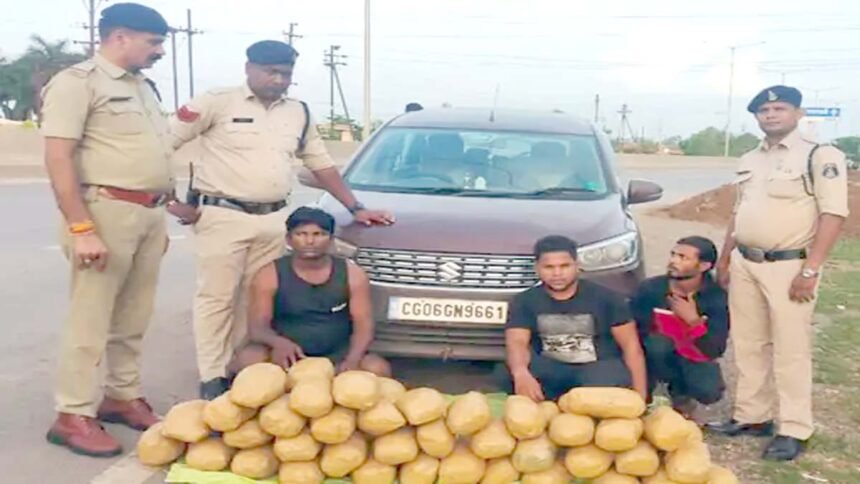 गांजा तस्करी करते तीन युवक गिरफ्तार, ओड़िशा से कार में लेकर पहुंचे थे रायपुर… हाइवे पर पकड़ाए