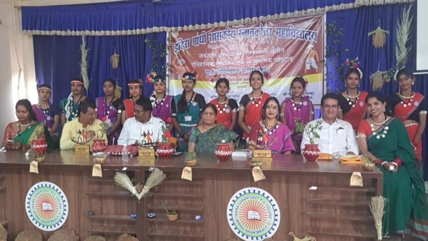 भिलाई। शासकीय इंदिरा गांधी महाविद्यालय वैशाली नगर भिलाई में जनजाति समाज का गौरवशाली अतीत विषय पर एक दिवसीय अंतरराष्ट्रीय संगोष्ठी का आयोजन किया गया l यह कार्यक्रम संस्था के प्राचार्य डॉ अल्का मेश्राम के मार्गदर्शन में मे किया गया l इस कार्यक्रम में डॉ वेदवती मंडावी, डॉ आशुतोष मंडावी तथा डॉ मृणाल सिंह वक्ता थे। कार्यक्रम का शुभारंभ सरस्वती मां के तैलचित्र पर दीप प्रज्वलन व भगवान बिरसा मुंडा , रानी दुर्गावती, गुंडाधुर और भारत माता के तैलचित्र पर पुष्प अर्पण के साथ प्रारंभ किया गया।