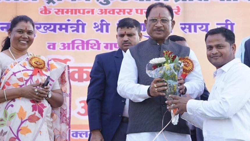 रायपुर। मुख्यमंत्री विष्णुदेव साय रविवार काे जशपुर जिले के पत्थलगांव तहसील के ग्राम बागबहार मिनी स्टेडियम में आयोजित 33 वें ओपन चैलेंज ट्रॉफी फुटबॉल प्रतियोगिता के समापन समारोह में शामिल हुए। मुख्यमंत्री श्री साय ने इस मौके पर प्राथमिक स्वास्थ्य केंद्र बागबहार के 10 बेड के अस्पताल को 30 बेड में उन्नयन करने की घोषणा भी की। उन्होंने बागबहार के शिव मंदिर के पास तालाब के सौंदर्यीकरण, विश्रामगृह निर्माण, बागबहार चौक- चौराहों में हाई मास्क लगाने, मिनी स्टेडियम में आवश्यक सुविधाओं का विकास तथा कोतबा में अपेक्स बैंक खोलने की घोषणा की।