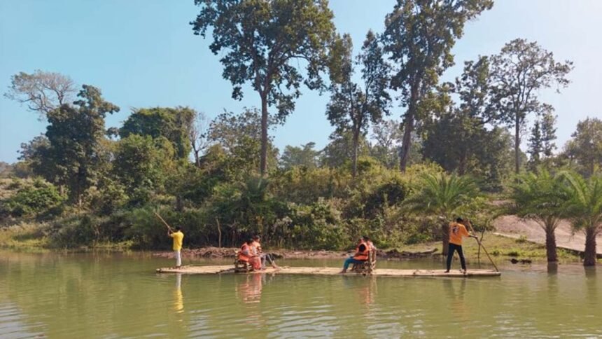खास आकर्षण उयधीर नाले में बम्बू राफ्टिंग
