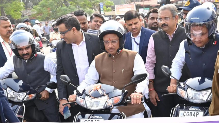 मुख्यमंत्री श्री साय ने गुरुवार को राजधानी रायपुर के रोहणीपुरम गोल चौक पहुंचकर बाईक रैली में हिस्सा लिया। उन्होंने दोपहिया वाहन चालकों के साथ साथ चार पहिया वाहन चालकों से भी यातायात नियमों का पालन करने की अपील की। इस दौरान श्री साय ने हरी झण्डी दिखाकर भव्य बाईक रैली को रवाना भी किया। रैली के दौरान स्वंयसेवी संस्थाओं ने नुक्कड़ नाटकों के माध्यम से यातायात नियमों का पालन करने से होने वाले फायदों के बारे में भी लोगों को जागरूक किया गया।