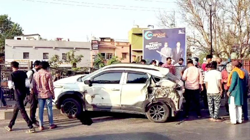 मिली जानकारी के अनुसार टाटा नेक्शन कार क्रमांक एमएच 49 सीडी 6300 हादसे का शिकार हो गई। कार डिवाइडर की रेलिंग को तोड़ते हुए चढ़ गई। यदि रेलिंग नहीं होती तो दूसरी ओर कार उछलकर पलट सकती थी। कार में एक महिला व दो पुरुष सवार थे जो कि ओड़िशा से महाराष्ट्र की ओर जा रहे थे। कार सवारों ने बताया कि पीछे से आ रही ट्रक ने ठोकर मारी जिससे उसकी कार अनियंत्रित हो गई और यह हादसा हुआ। वहीं प्रत्यक्षदर्शियों का कहना है कि जिस जगह हादसा हुआ वहां डिवाइडर पर लोहे की रेलिंग लगी हुई थी। यदि रेलिंग नहीं होती तो कार दूसरी ओर पलट सकती और हादसा बड़ा हो सकता था। घटना की सूचना के बाद यातायात विभाग की टीम मौके पर पहुंची और कार को निकालना शुरू किया।