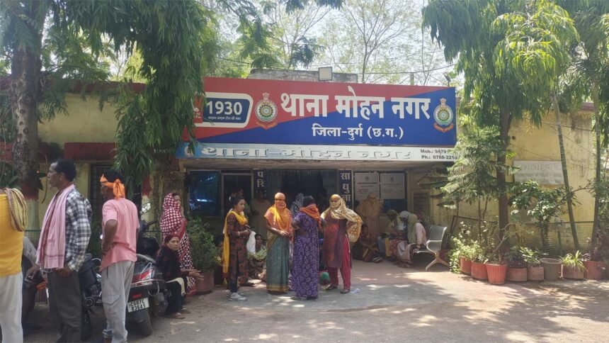 दुर्ग के मोहन नगर थाने का घेराव करने पहुंचे परिजन, युवक को गिरफ्तार करने की मांग